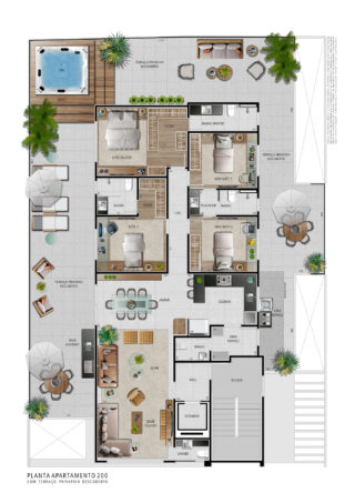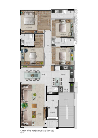 – Apartamentos de cobertura com 5 quartos, sendo 3 suítes;
